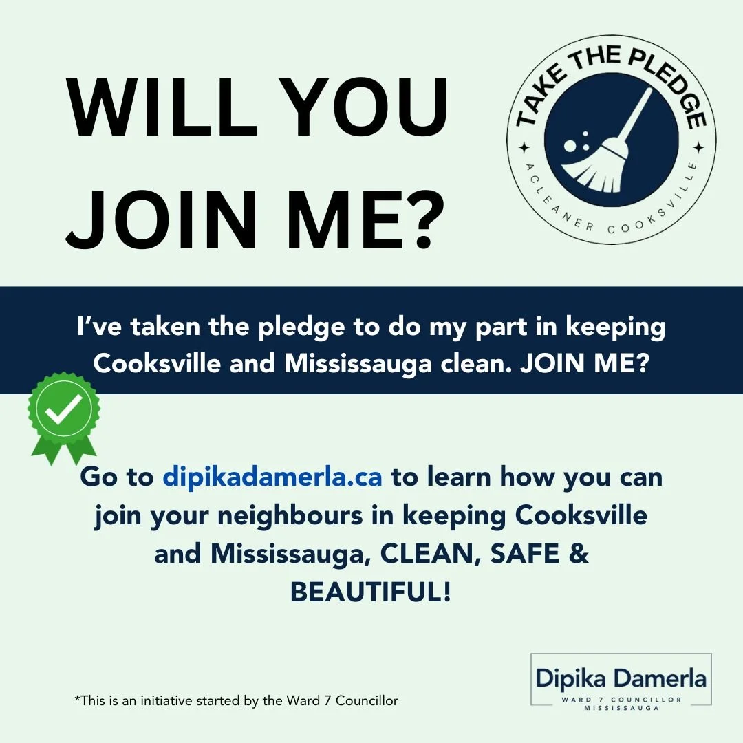 I pledge to do my part in keeping Cooksville and Mississauga clean:
